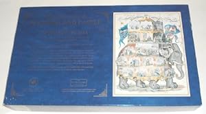 The Noble Game of Elephant and Castle or Travelling in Asia. "Combining amusement with instruction for youth of both sexes." This is a replica version of a 19th-century game. Inscription on the top panel of the box reads: "The Noble Game of Elephant and Castle was first published in 1822 as a hand coloured engraving by William Darton of London. "The game is played on a magnificent board depicting an elephant surmounted by a howdah with an Indian mahout. The mysteries of the Orient are discovered on a grand tour from the Frozen Ocean in the Arctic wastes of north Russia, thence south through Asia into India, China and Japan. The game was published at the height of the British Empire and outrageously describes the appearance, customs and cultures of the region's peoples, comparing their way of life to that of the British. "The Noble Game of Elephant and Castle is one of a set of collectable, early nineteenth century board games from the archives of the Victoria & Albert Museum." Game was published in 1994 by the Board of Trustees of Victoria & Albert Museum. From originals at the Bethnal Green Museum of Childhood, London. The game includes vintage-style wooden pawns and spinner.